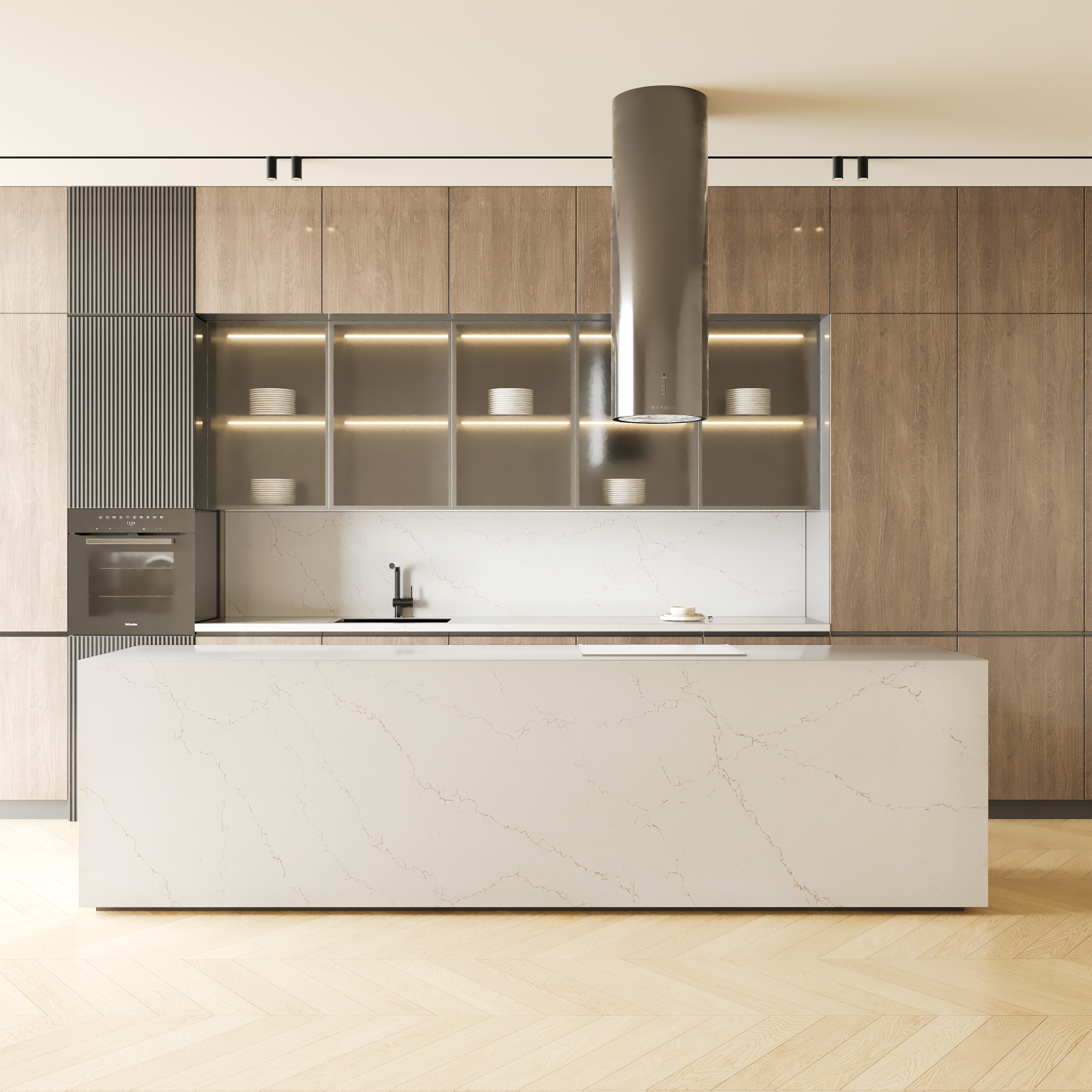 Golden Tracery – 4144 embodies the beauty of natural stone with a contemporary engineered quartz finish. The subtle golden patterns add depth and character to the surface, while the gloss finish enhances brightness and reflects light elegantly across the slab.