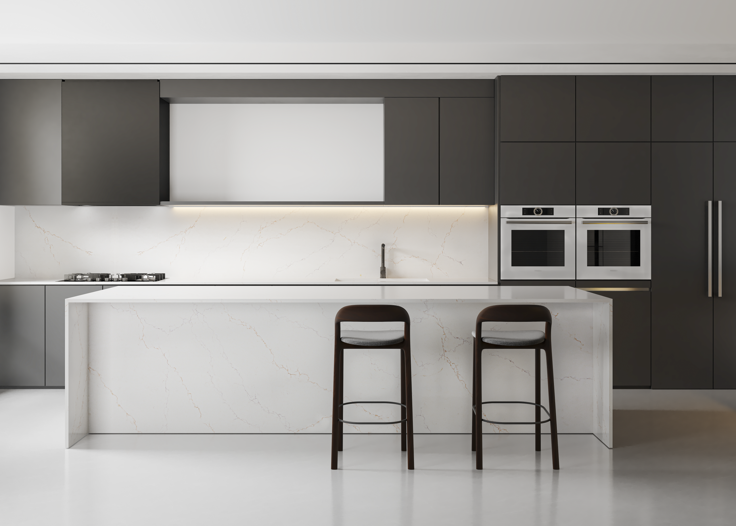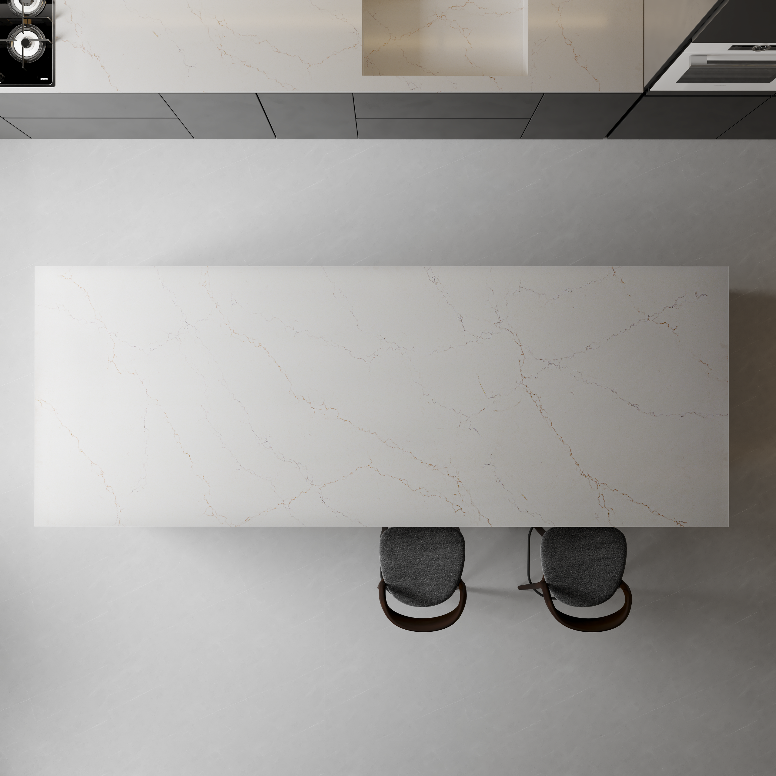 Golden Tracery – 4144 is an excellent choice for designers and homeowners seeking a bright white quartz surface with elegant golden veining for kitchen benchtops and refined interiors.