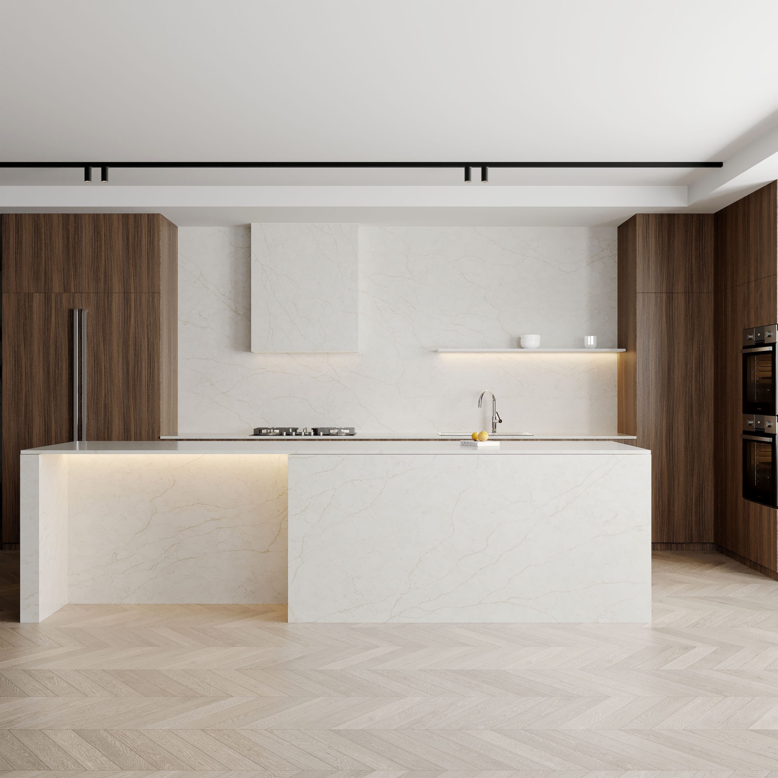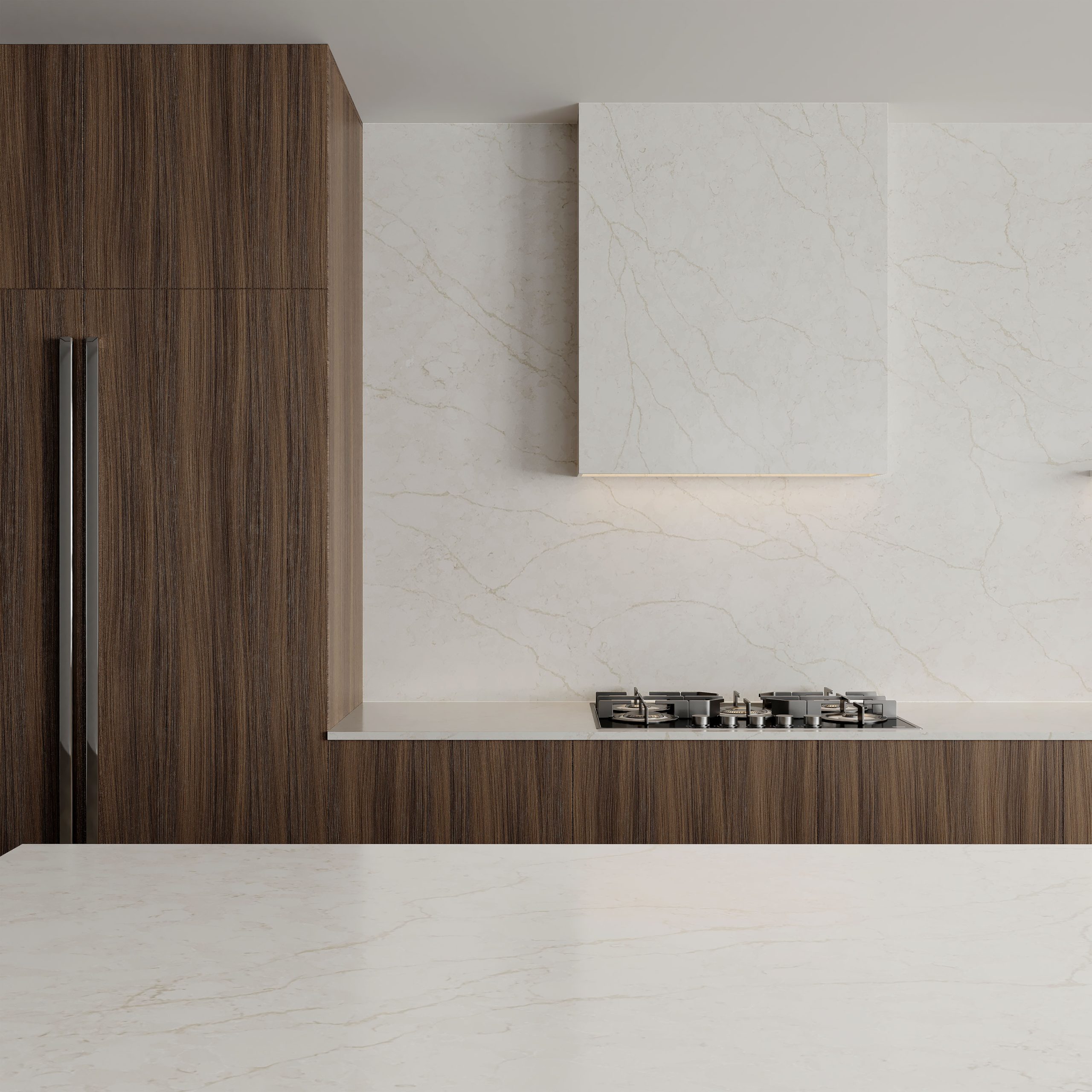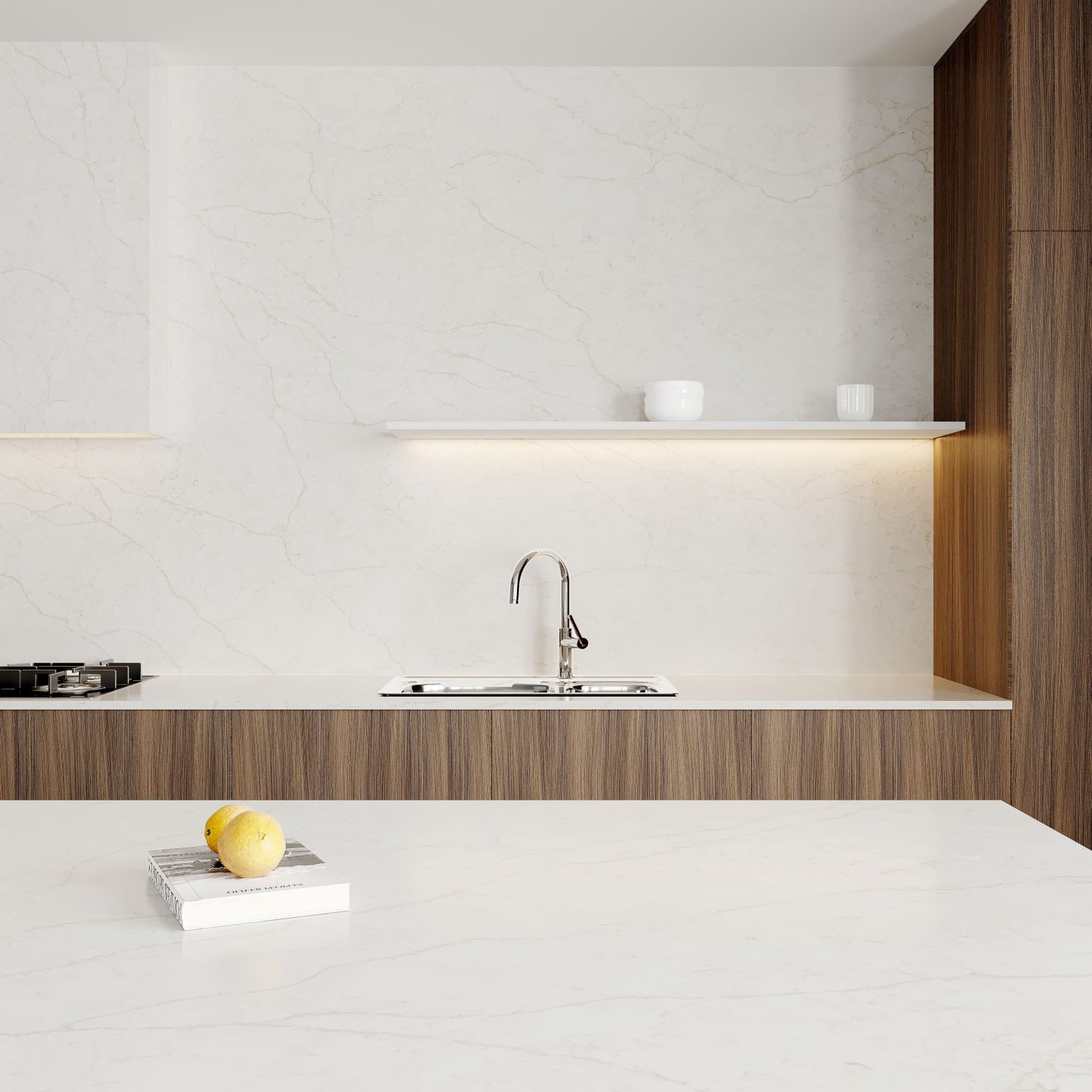 Celeste River – 6090 is an excellent choice for designers and homeowners seeking a marble-inspired white quartz surface with flowing veining for kitchen benchtops and elegant interior spaces.