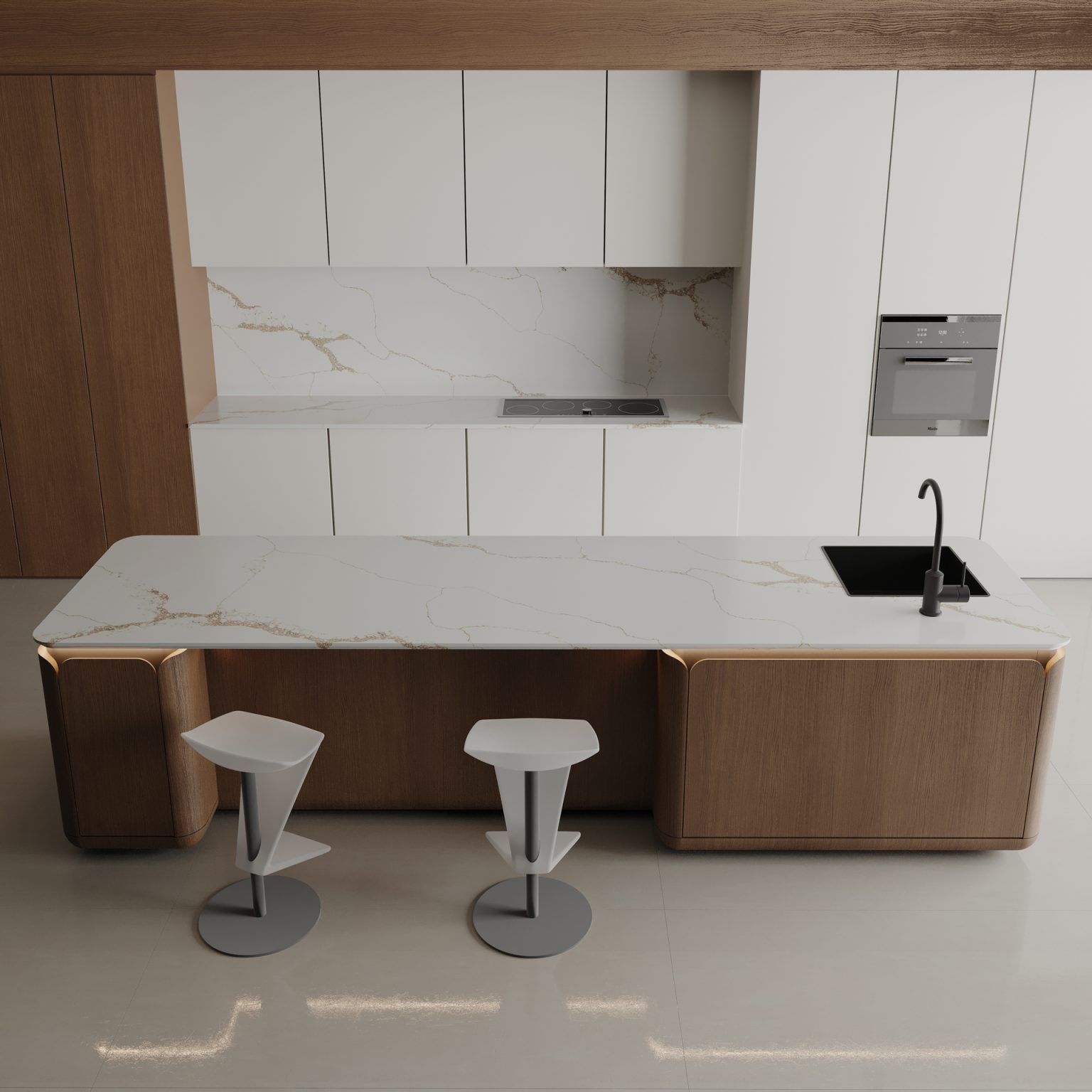 The engineered quartz construction ensures durability, consistency, and low maintenance, offering the luxury of natural marble while providing practical performance for residential and commercial projects.