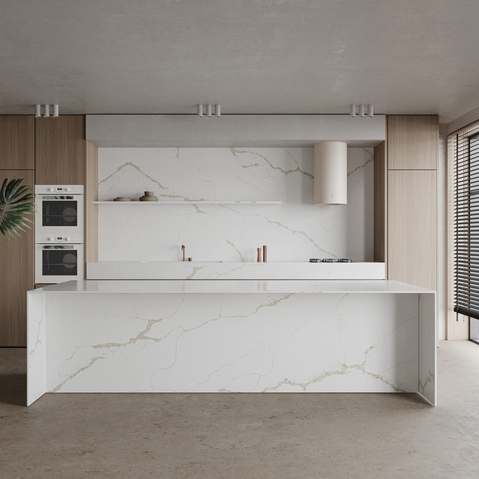 Elysian Gold – 6160 from the Unistone collection features a luminous white surface adorned with delicate gold veining flowing gracefully across the slab. Its refined combination of tone and texture brings warmth, sophistication, and timeless elegance to kitchens, bathrooms, and architectural interiors.