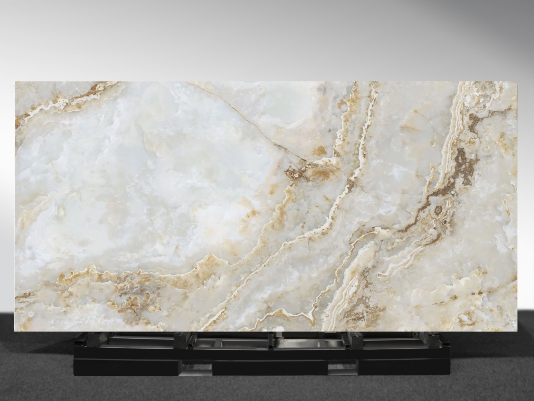 AC2053 Gloss Empira Onyx AC Stone slab with dramatic onyx-style veining and book match design | AUSKstone