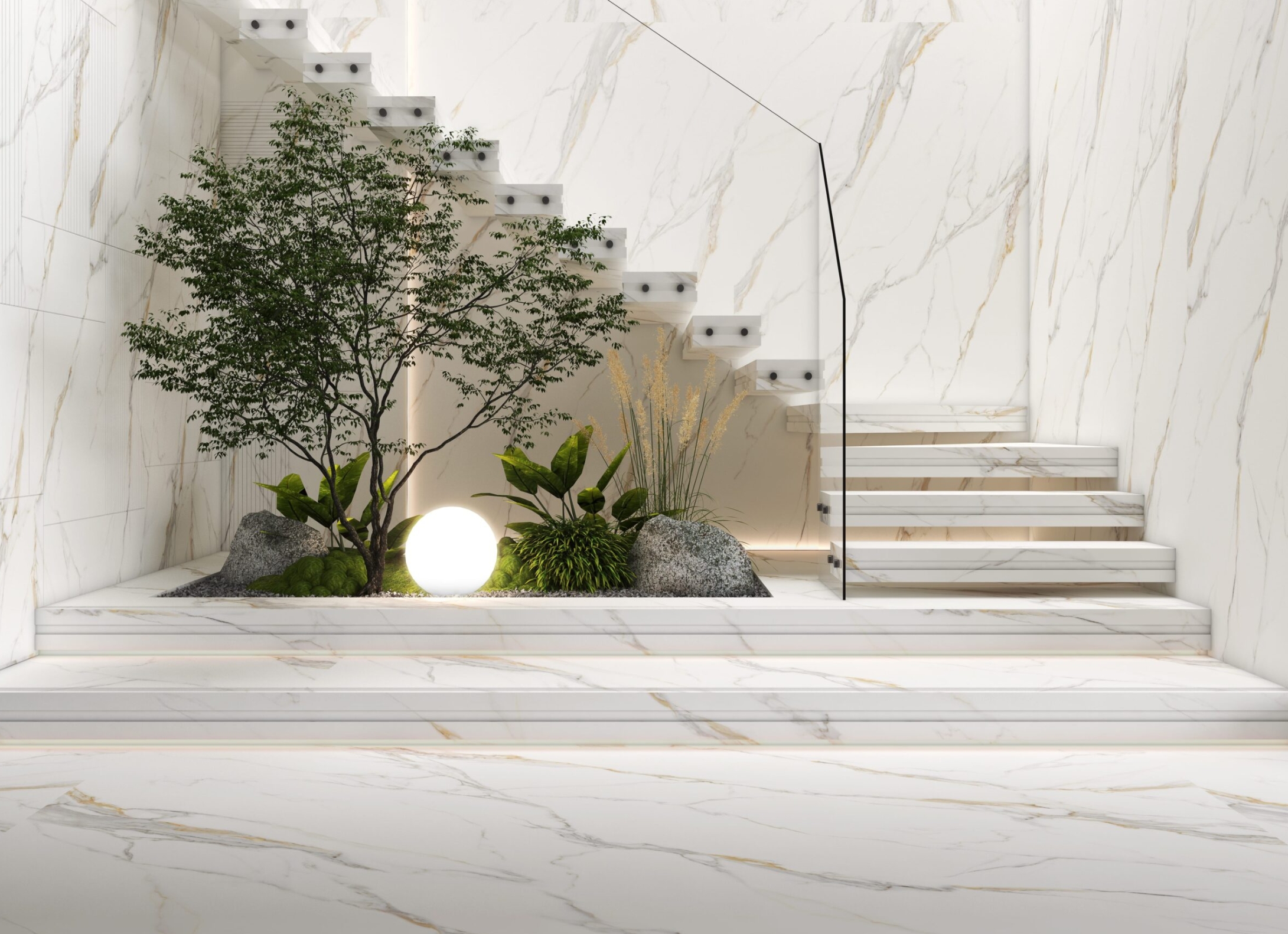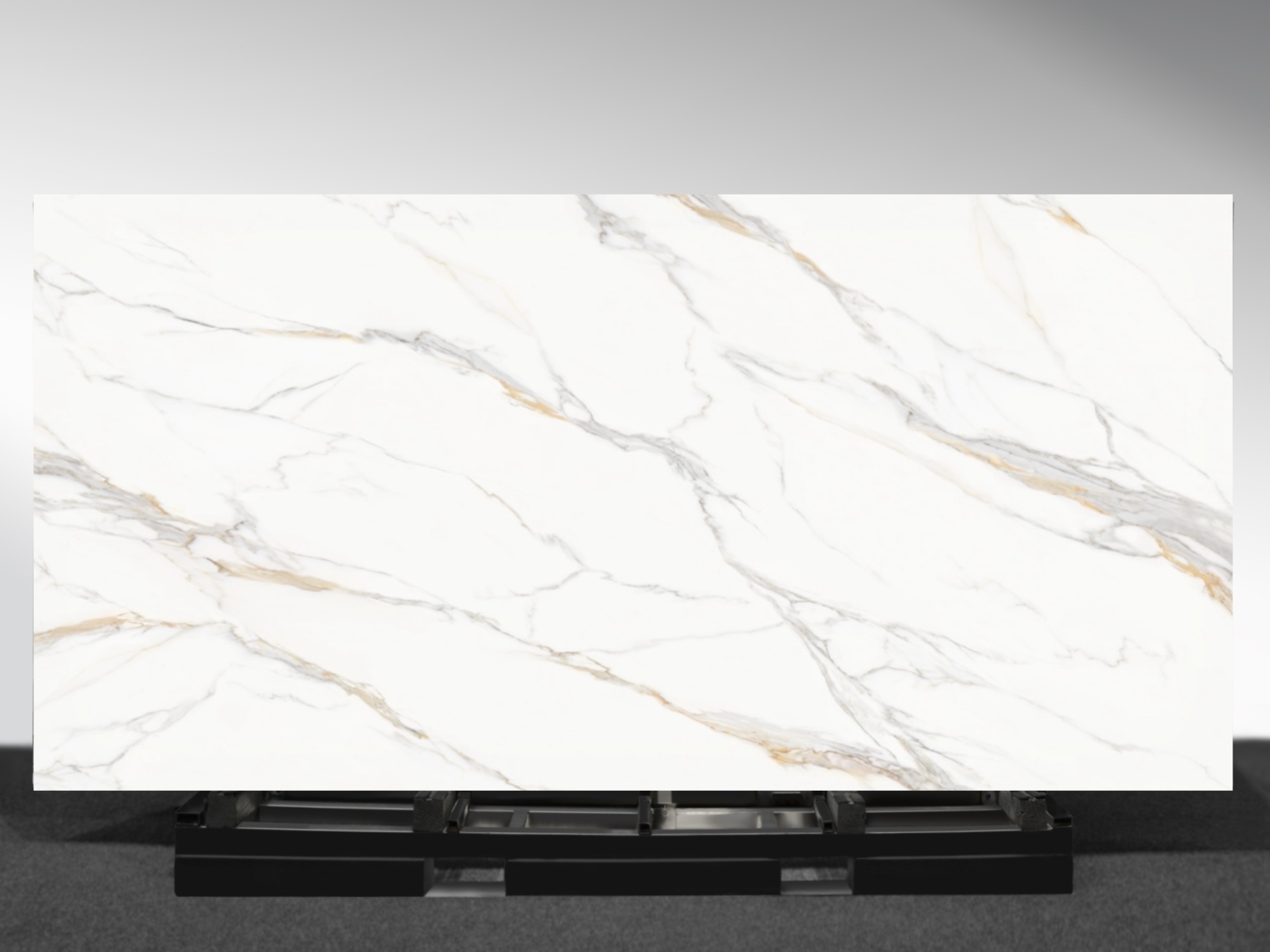 Delicate and refined, AC Stone Rose Gold boasts a beautiful matt white base with thin gold and grey veins dancing throughout the piece. AC Stone Rose Gold is the perfect subtle yet elegant surface that complements any busy and loud interior space. Rose Gold easily matches both dark or light features, making it the perfect choice to tie any space together.