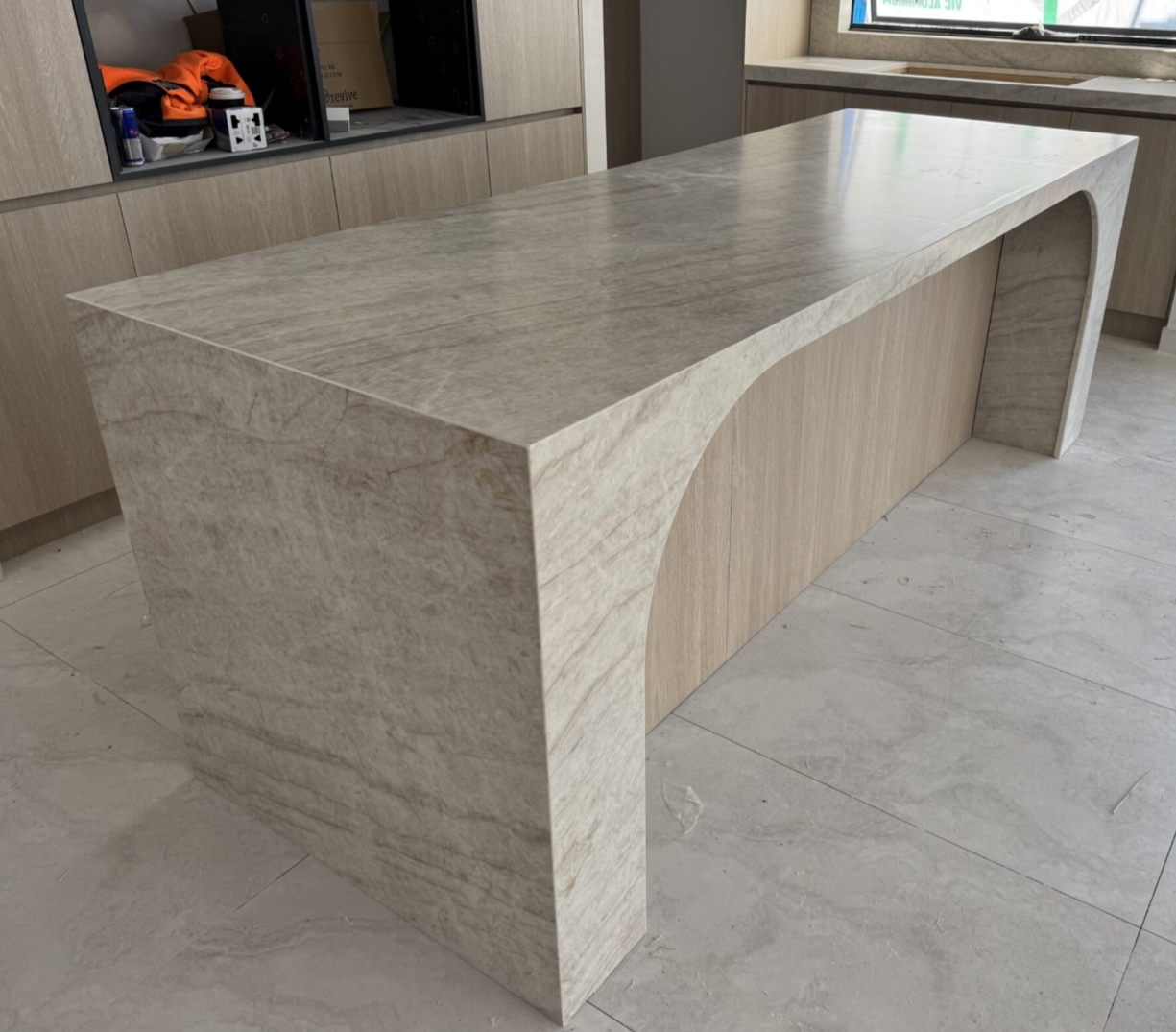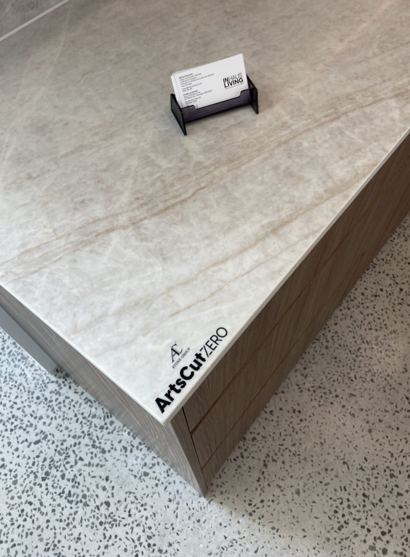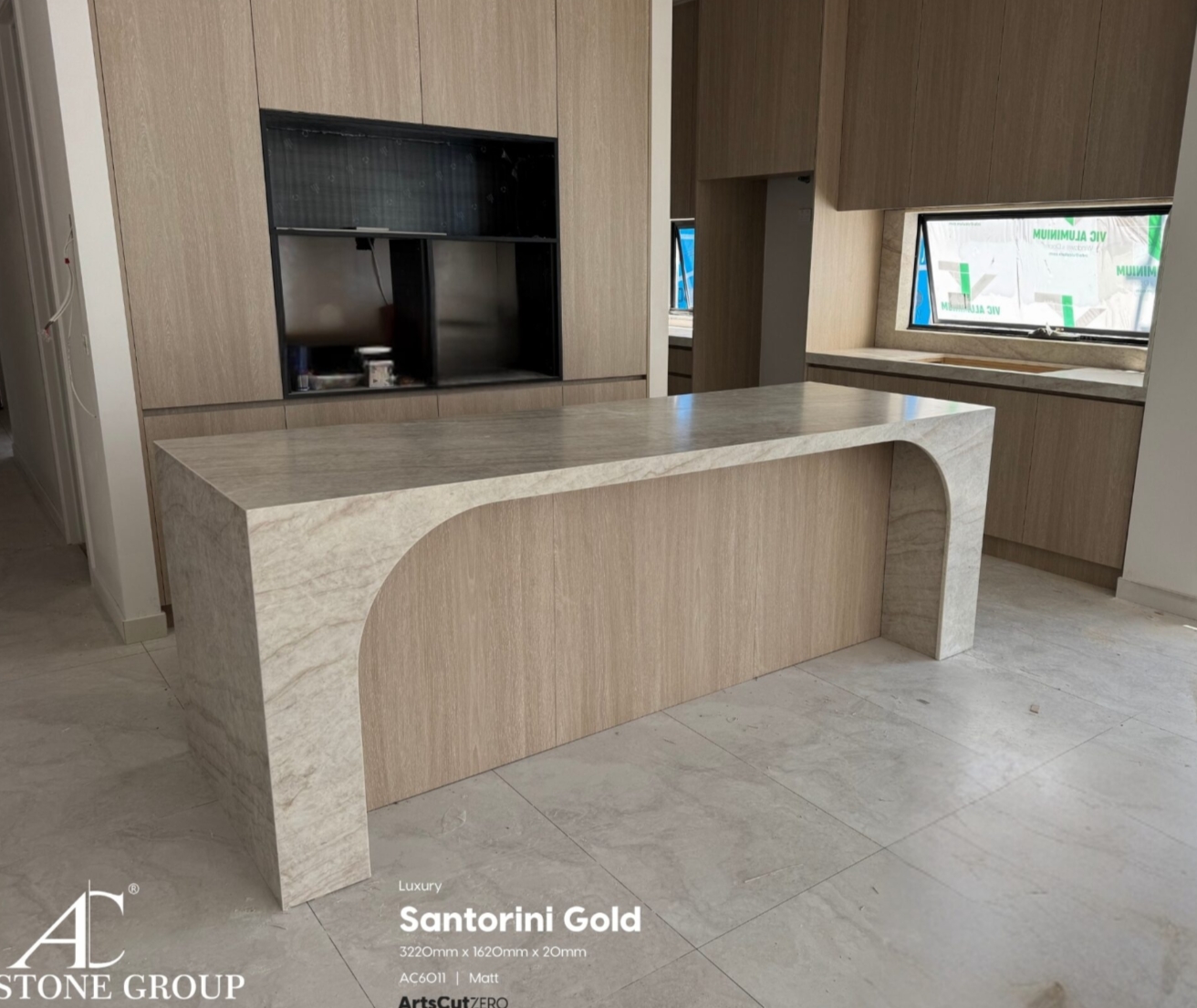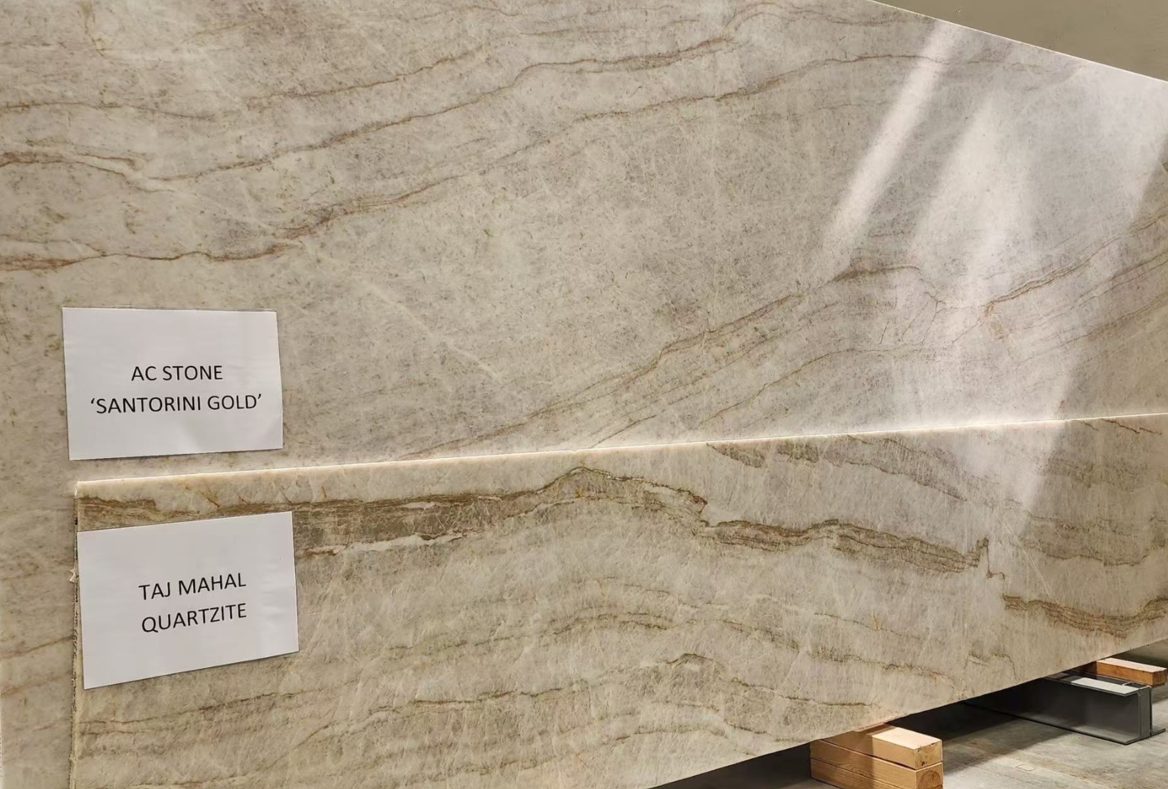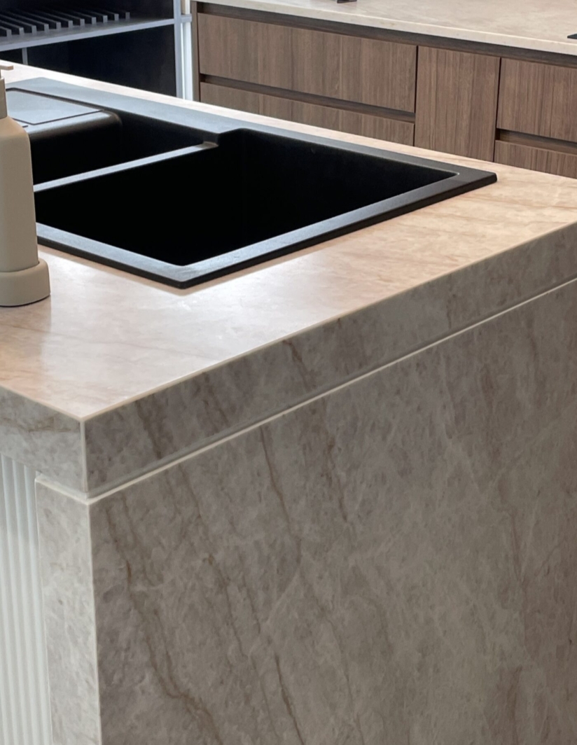 Bring the timeless elegance of natural stone into your space with AC Stone Santorini Gold, a masterfully crafted slab inspired by the renowned Taj Mahal stone. This premium silica-free stone offers the soft, creamy tones and subtle, flowing veins that capture the luxurious warmth of marble without the maintenance.