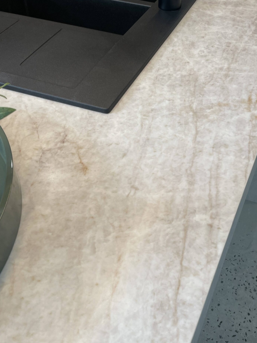 Ideal for both classic and contemporary interiors, Santorini Gold’s versatile beauty enhances kitchen countertops and bathrooms, creating an inviting ambiance. Meticulously engineered for durability, it’s stain-resistant and designed to withstand daily wear, making it the perfect choice for both residential and commercial applications.