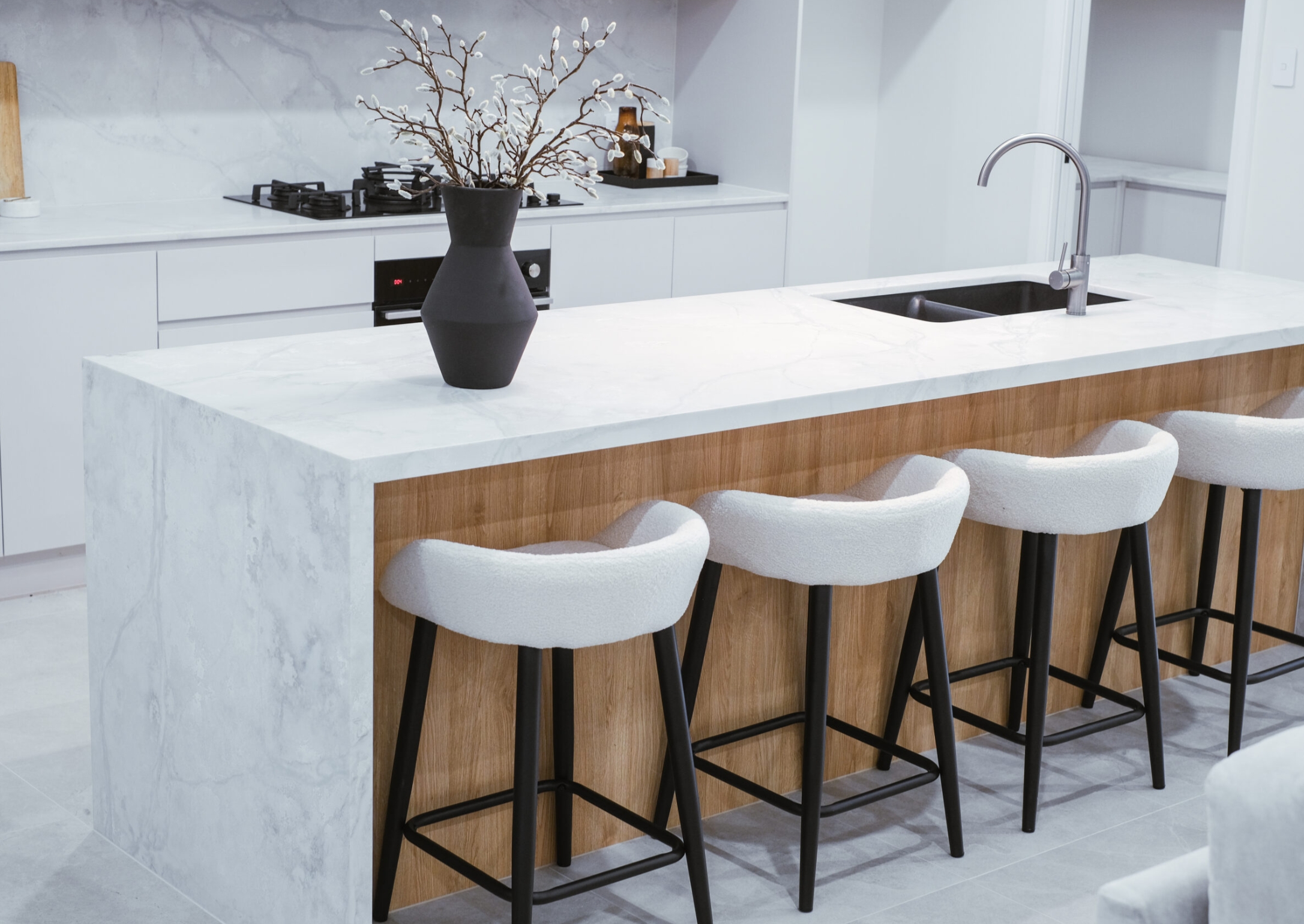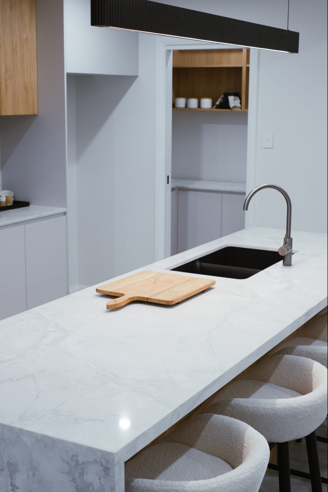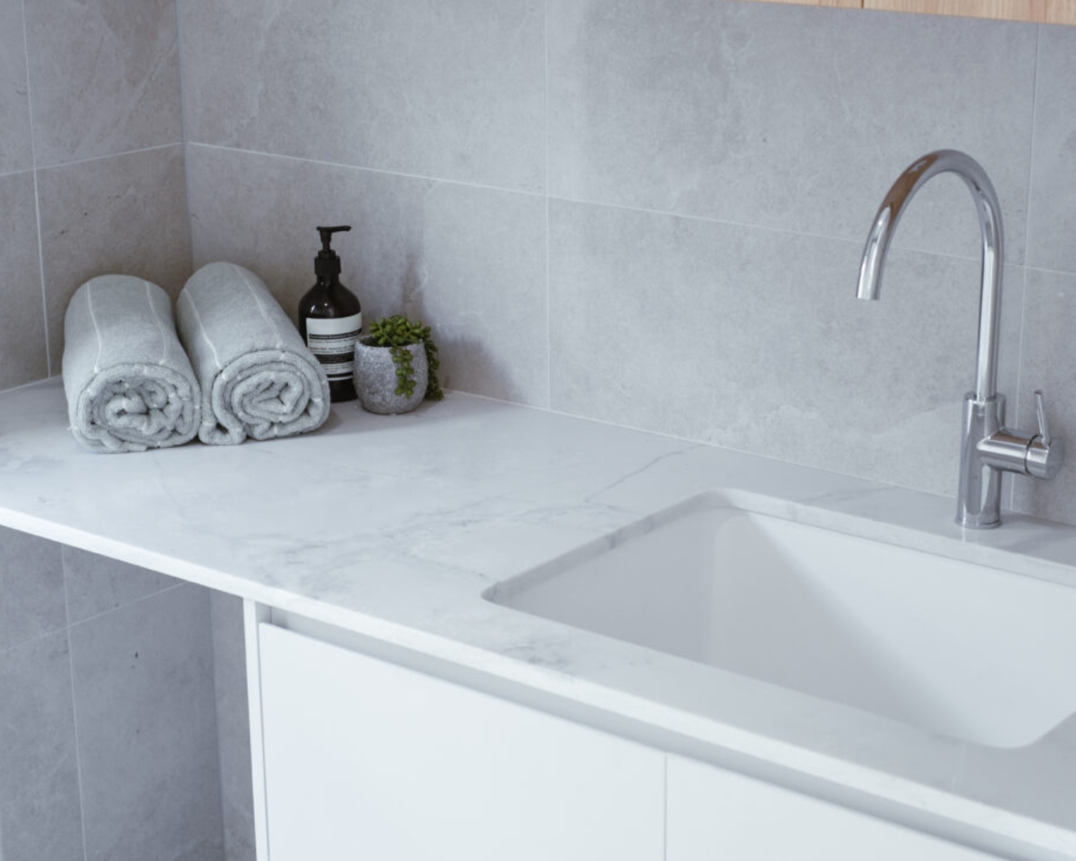 AC Stone Bianco Perla is highly durable, non-porous, hygienic, stain-resistant, easy to clean and maintain, making it excellent for indoor living spaces, including kitchen bench tops, splash backs and bathroom vanities.