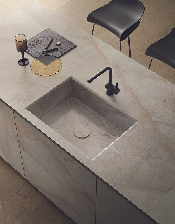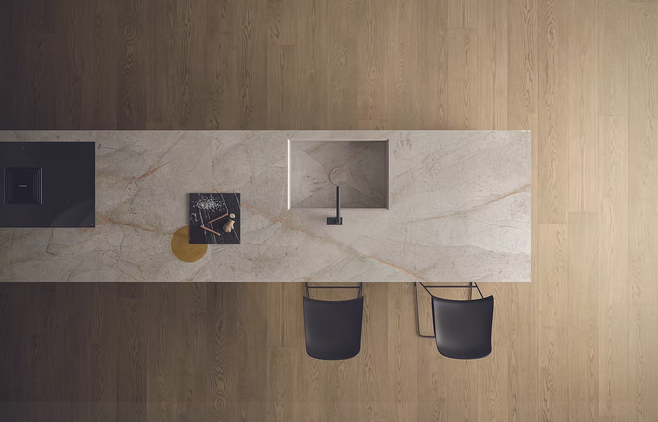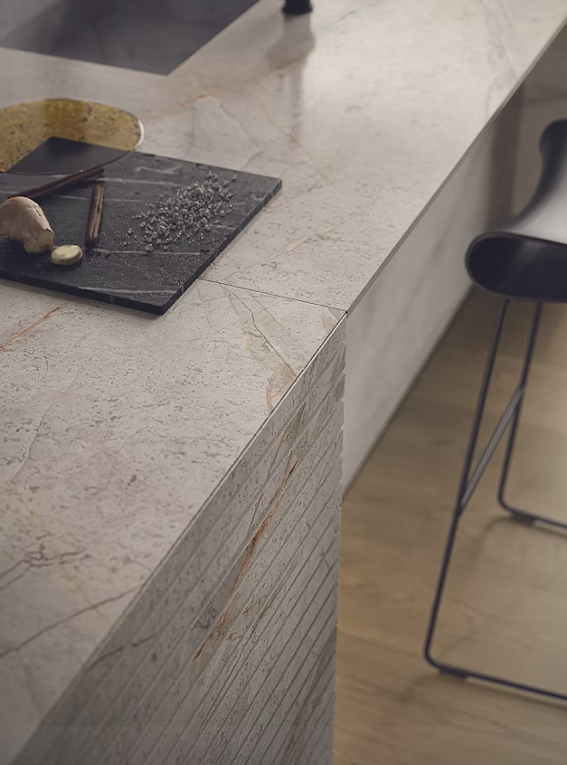 With a large-format size of 1600×3200×12mm, Appennino offers seamless application possibilities for kitchen benchtops, splashbacks, bathroom walls, and feature surfaces. Its porcelain composition ensures high resistance to heat, stains, and scratches, making it a practical yet luxurious choice.