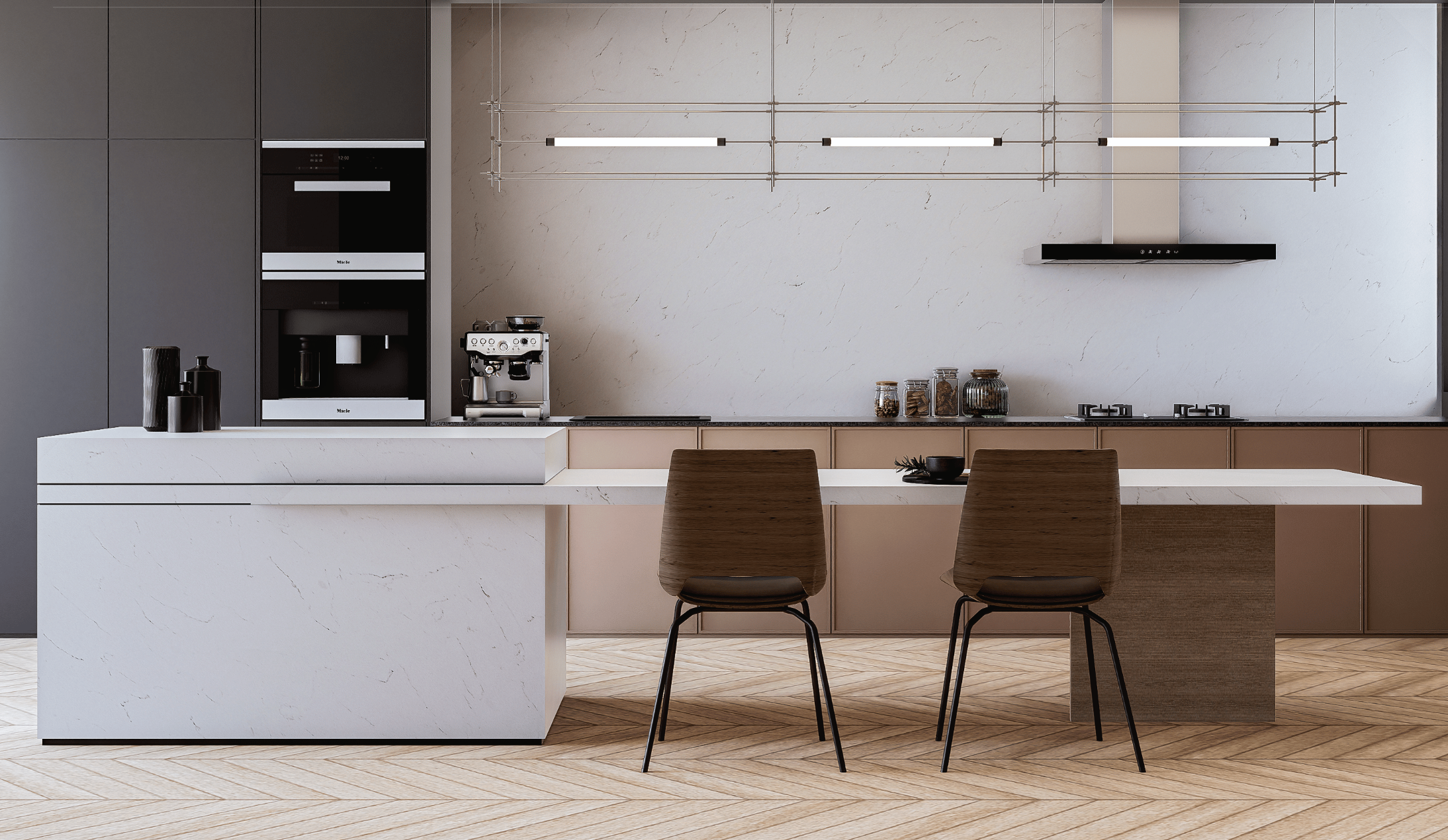 Blanco Bliss Zenith Surface Polished Slabs are perfect for creating timeless and elegant spaces, seamlessly pairing with timber cabinetry, metal fixtures, and ambient lighting for a modern, high-end interior aesthetic.