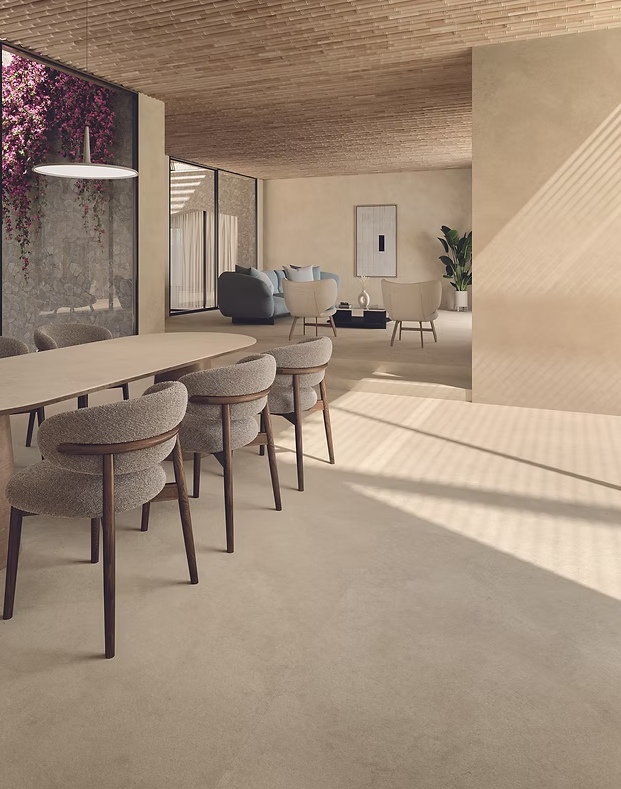 With its 1600×3200×12mm large-format size, Boost Icor Dune allows seamless installations that enhance spatial continuity and reduce visual interruptions. The hammered finish provides a textured surface that improves slip resistance, making it suitable for both indoor and outdoor applications.