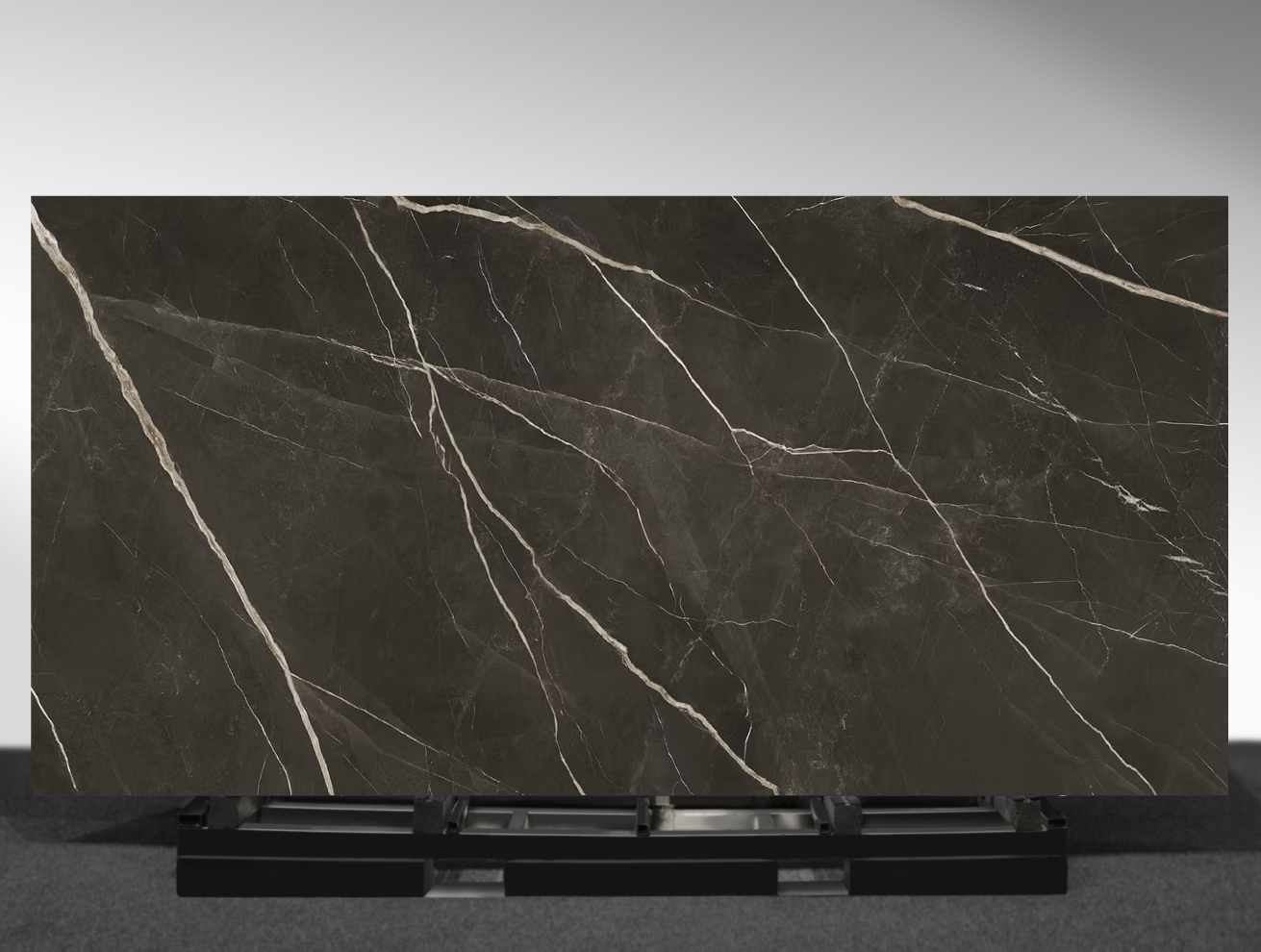 With its 1600×3200×12mm large format, Calacatta Black allows for seamless installations, reducing visible joints and enhancing the natural flow of the pattern. The silk finish adds a soft, elegant touch, making it suitable for both modern and classic interiors.