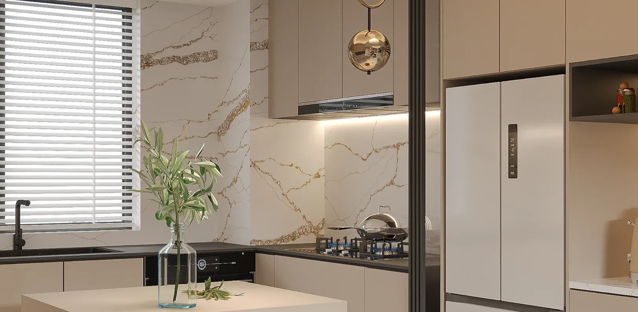 Calacatta Eureka (CSF6614) from AUSKstone’s Prestige Plus Range features a soft white base adorned with bold, gilded veining that strikes across the surface with dynamic energy. Its polished finish captures the drama and brilliance of discovery, offering a statement-making surface that combines luxury and contemporary artistry.