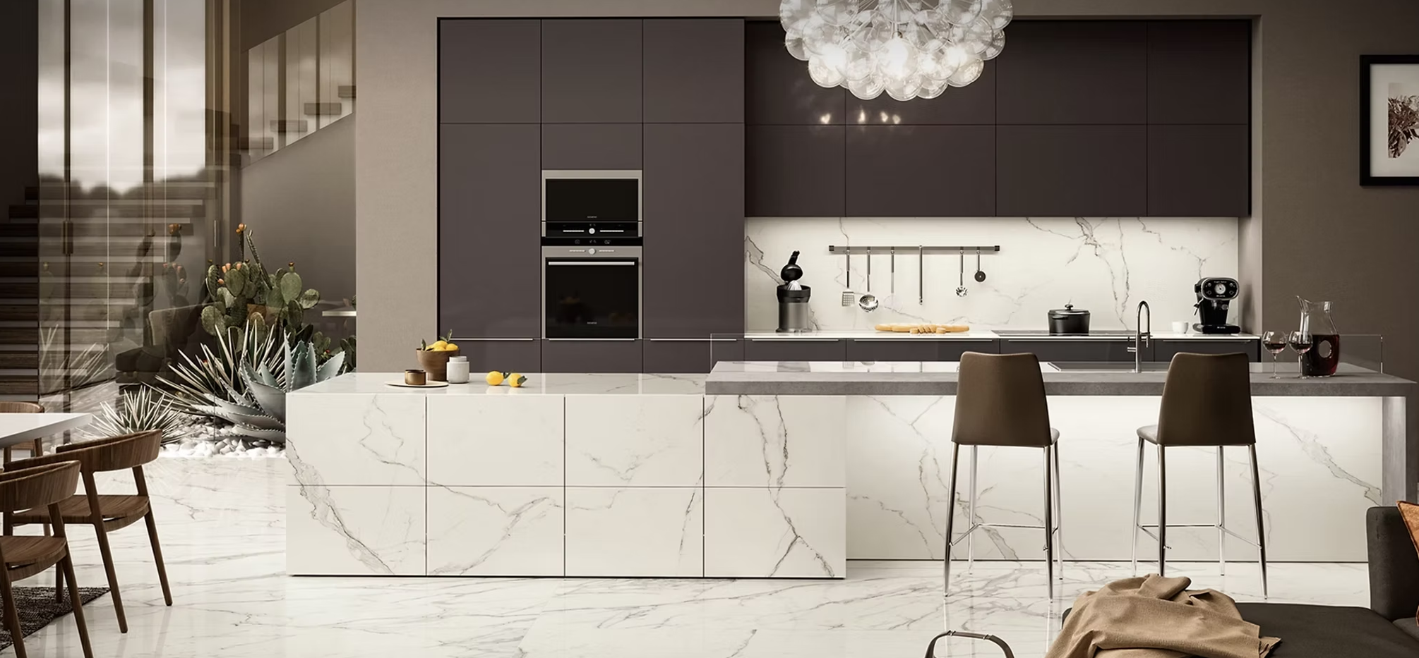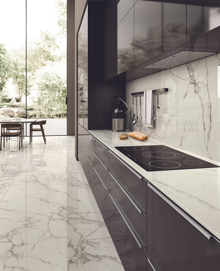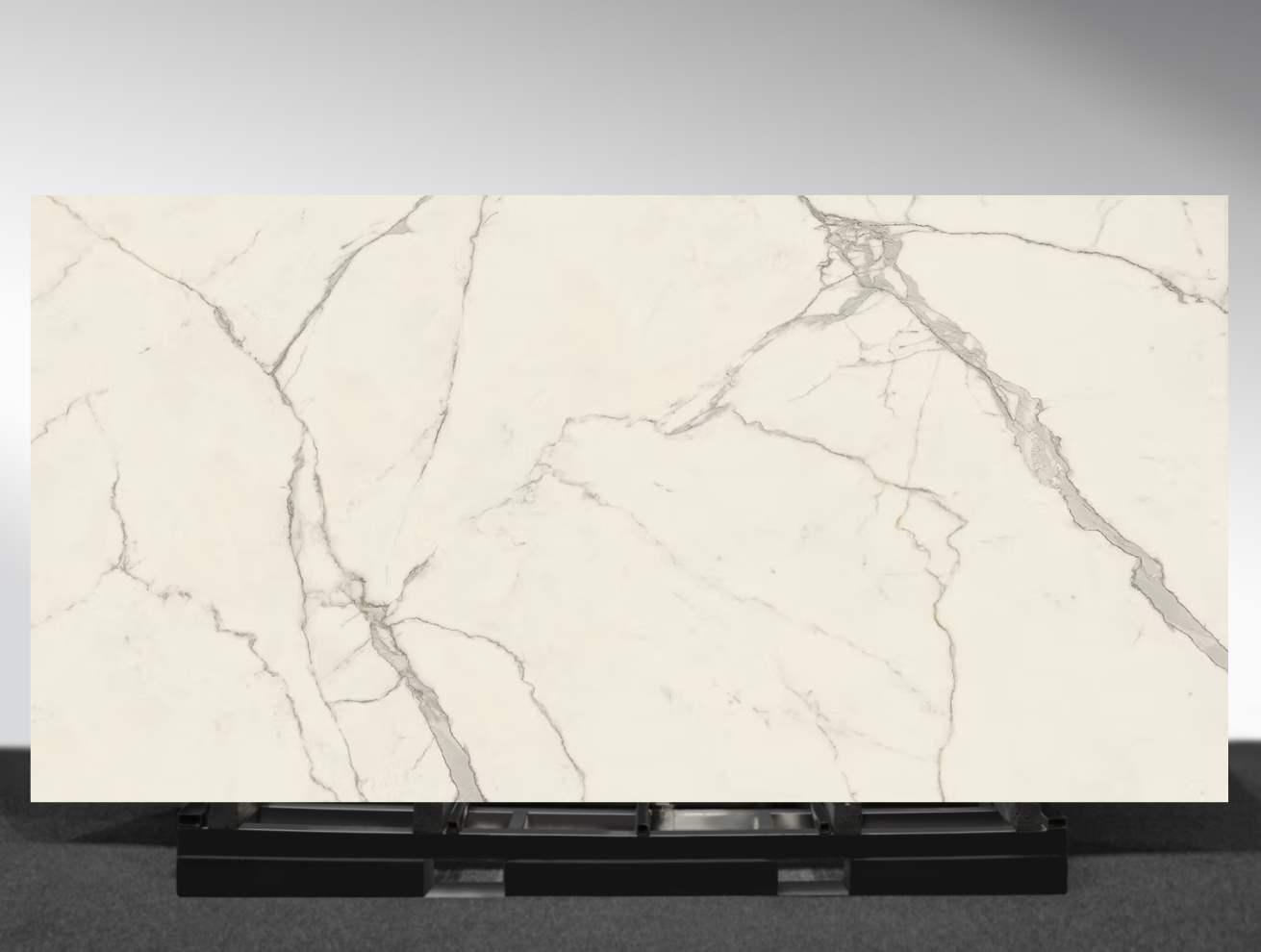 With its 1600×3200×12mm large format, Calacatta Extra allows for expansive, seamless installations, enhancing spatial continuity and reducing visible joints. The silk finish provides a smooth, refined surface that complements both modern minimalist designs and classic interiors.