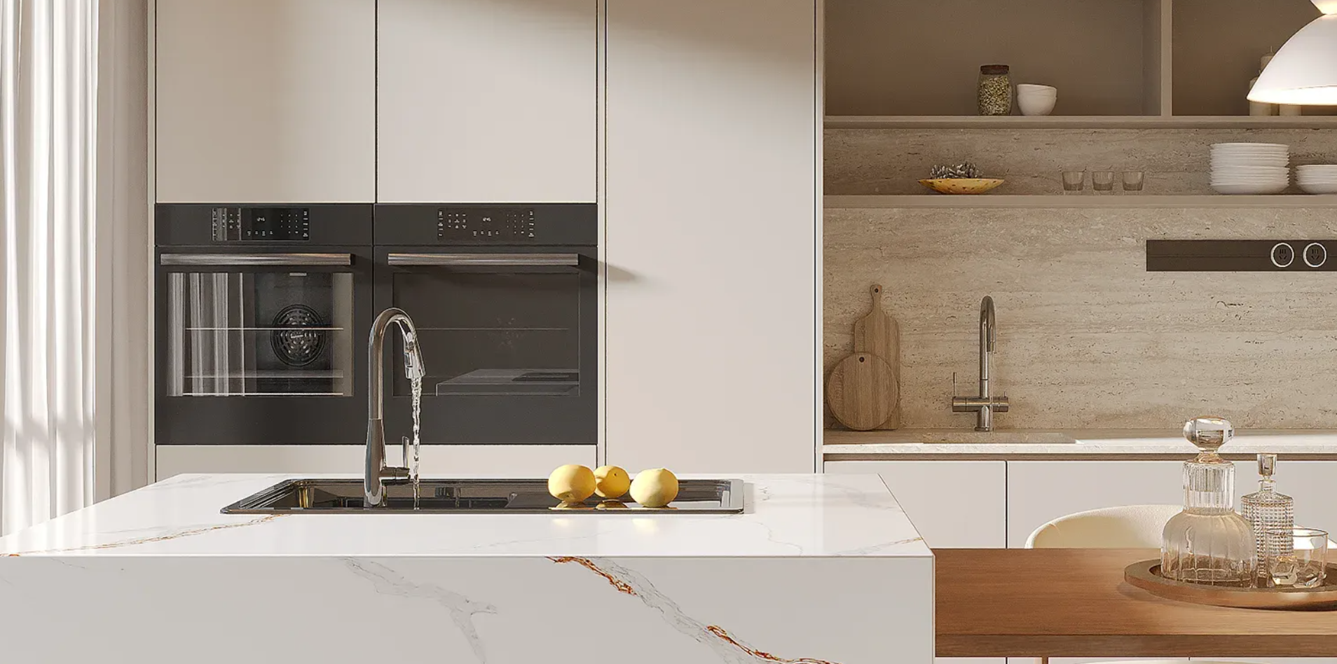 Ideal for kitchens, bathrooms, feature walls, and luxury interiors, Calacatta Fusion makes a statement without compromise. The bookmatched finish adds symmetry and balance, while the polished surface enhances the stone’s dynamic contrast and visual depth, perfect for interiors that embrace tension, sophistication, and artistry.