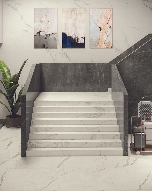 With its 1600×3200×12mm large-format size, Calacatta Prestigio allows for seamless, dramatic installations that highlight the natural movement of the veining across expansive surfaces. The silk finish enhances the slab with a smooth, elegant texture, elevating its visual depth and sophistication.