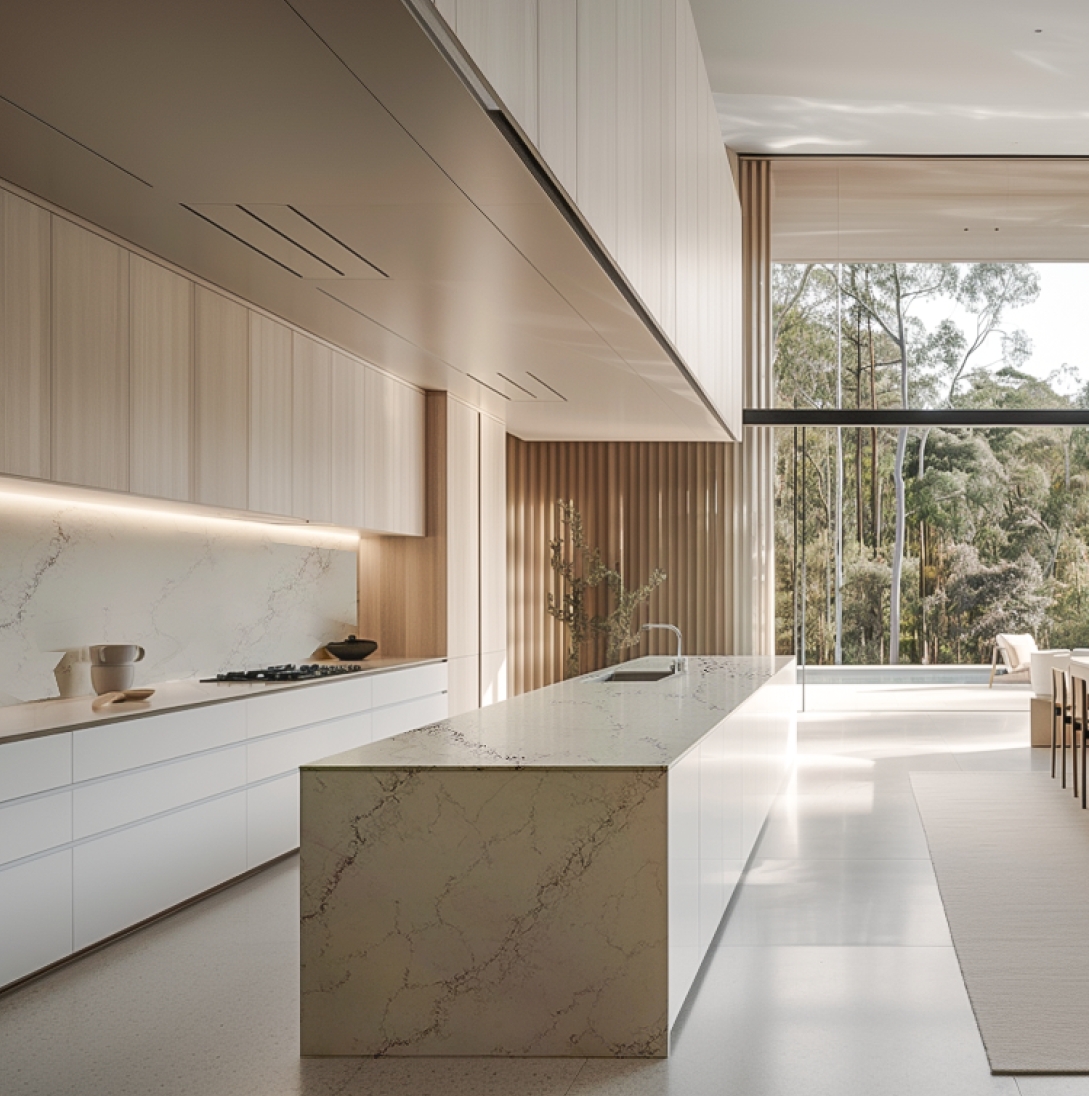 Xstone’s most popular ‘Celestial Blanc’, a silica-free quartz slab, brings a touch of pure elegance with its pristine white color.