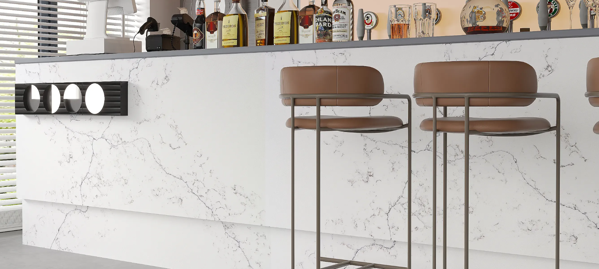Continental Drift (CSF6623) from AUSKstone’s Prestige Plus Range features a soft white base with fine, wandering veins that traverse the surface like tectonic plates in slow motion. Its polished finish creates a subtle sense of movement and natural rhythm, bringing the beauty of geological forms into contemporary interiors.