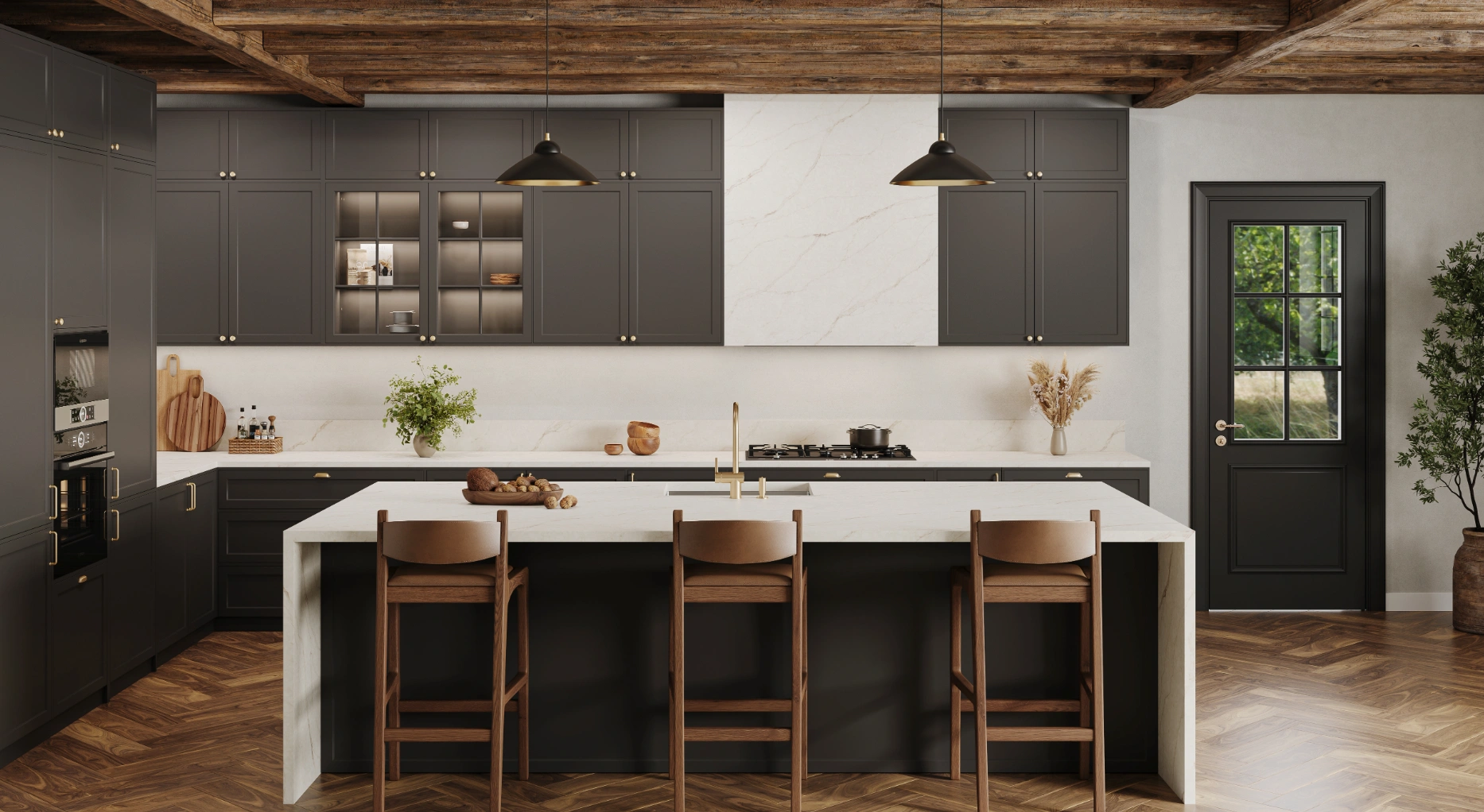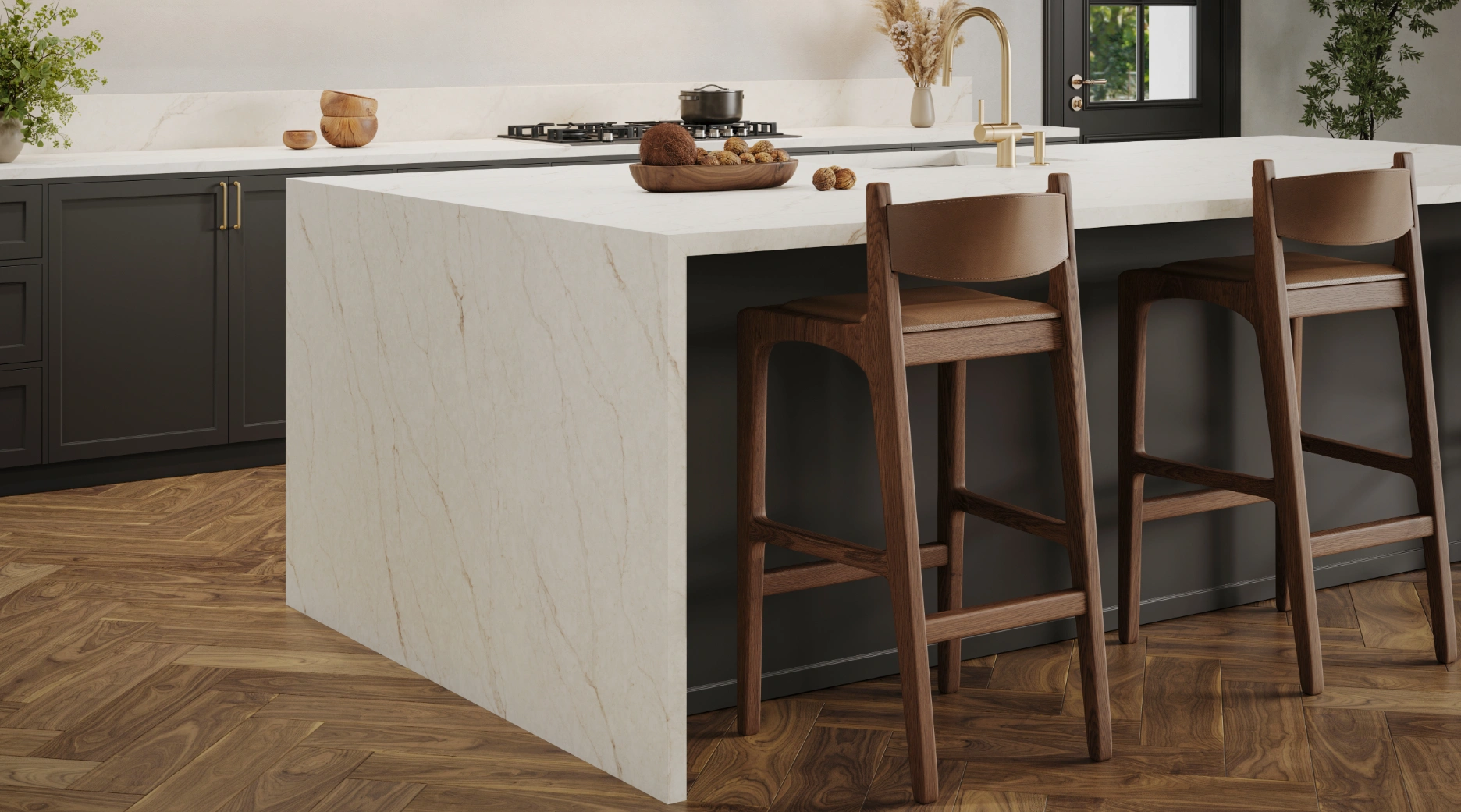 Elevate your space with Driftline – a beautifully balanced quartz surface from the Vadara® collection by AUSKstone Engineered Stone.