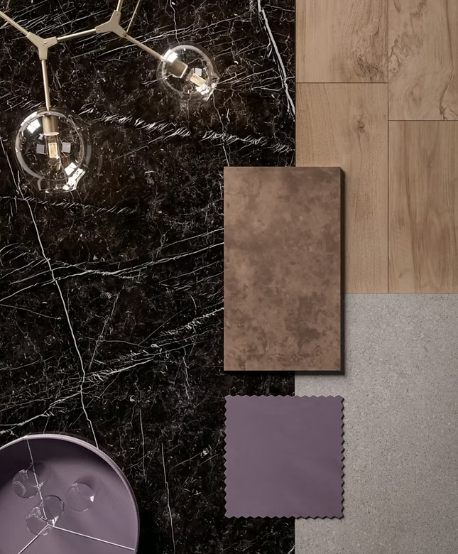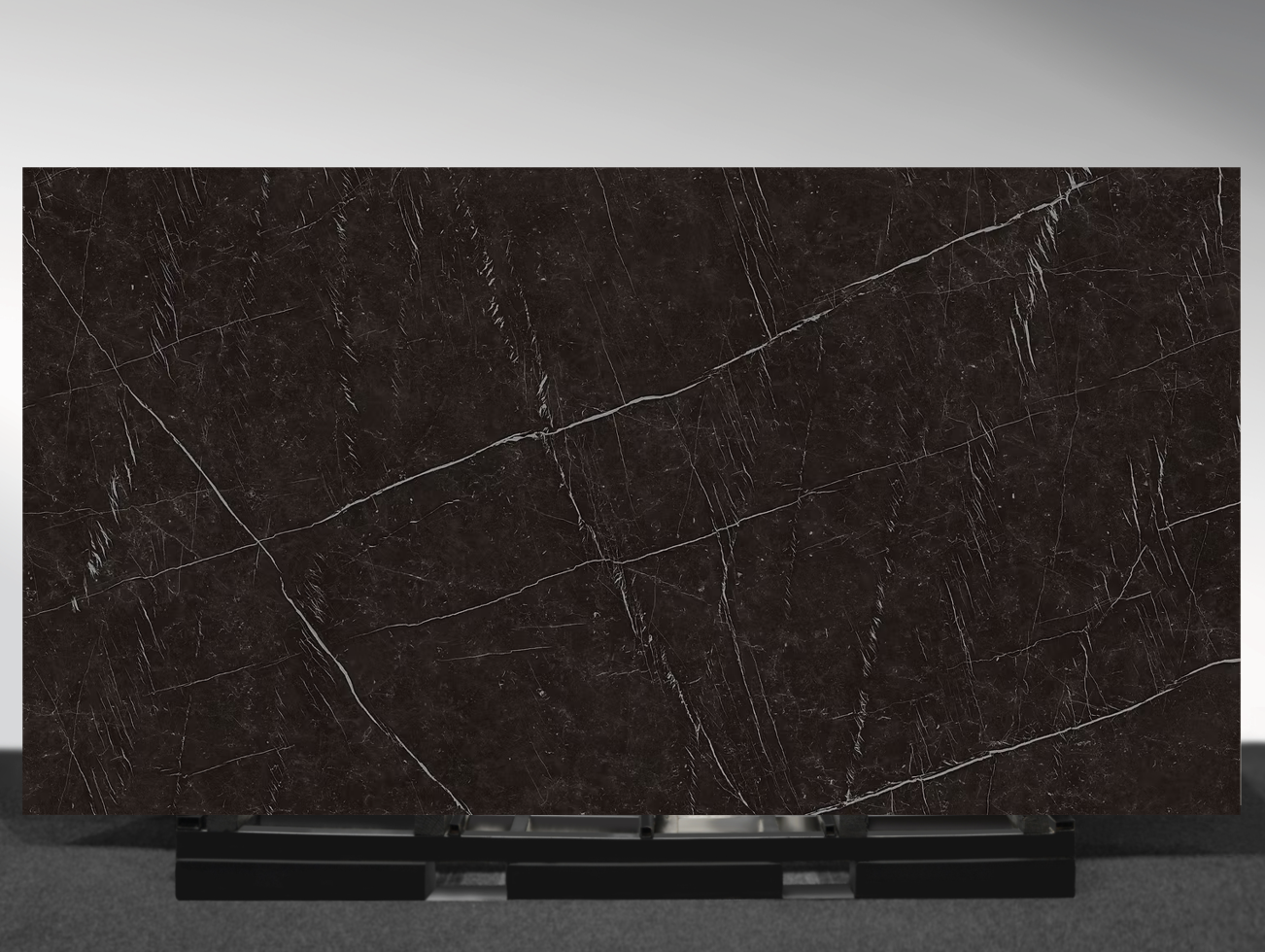 With its 1600×3200×12mm large format, Nero Marquina enables seamless installations that highlight the bold veining patterns across expansive surfaces. The silk finish enhances the slab with a refined, smooth texture that complements its striking visual contrast.