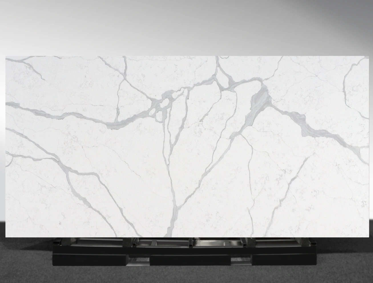 Rivuline features a soft white base with branching grey veins that spread across the slab in a natural, interconnected pattern. The lines vary in thickness, with some running bold and defined while others taper off into finer threads, creating a layered look without feeling busy. The overall palette stays light and neutral, making it easy to work into a wide range of interiors. Rivuline suits feature islands, splashbacks, and wall applications where the pattern can be seen at full scale. It offers more movement than a standard Calacatta, but still keeps a clean, controlled finish. A strong option for spaces that want visible structure and flow without stepping into heavy contrast or high drama.