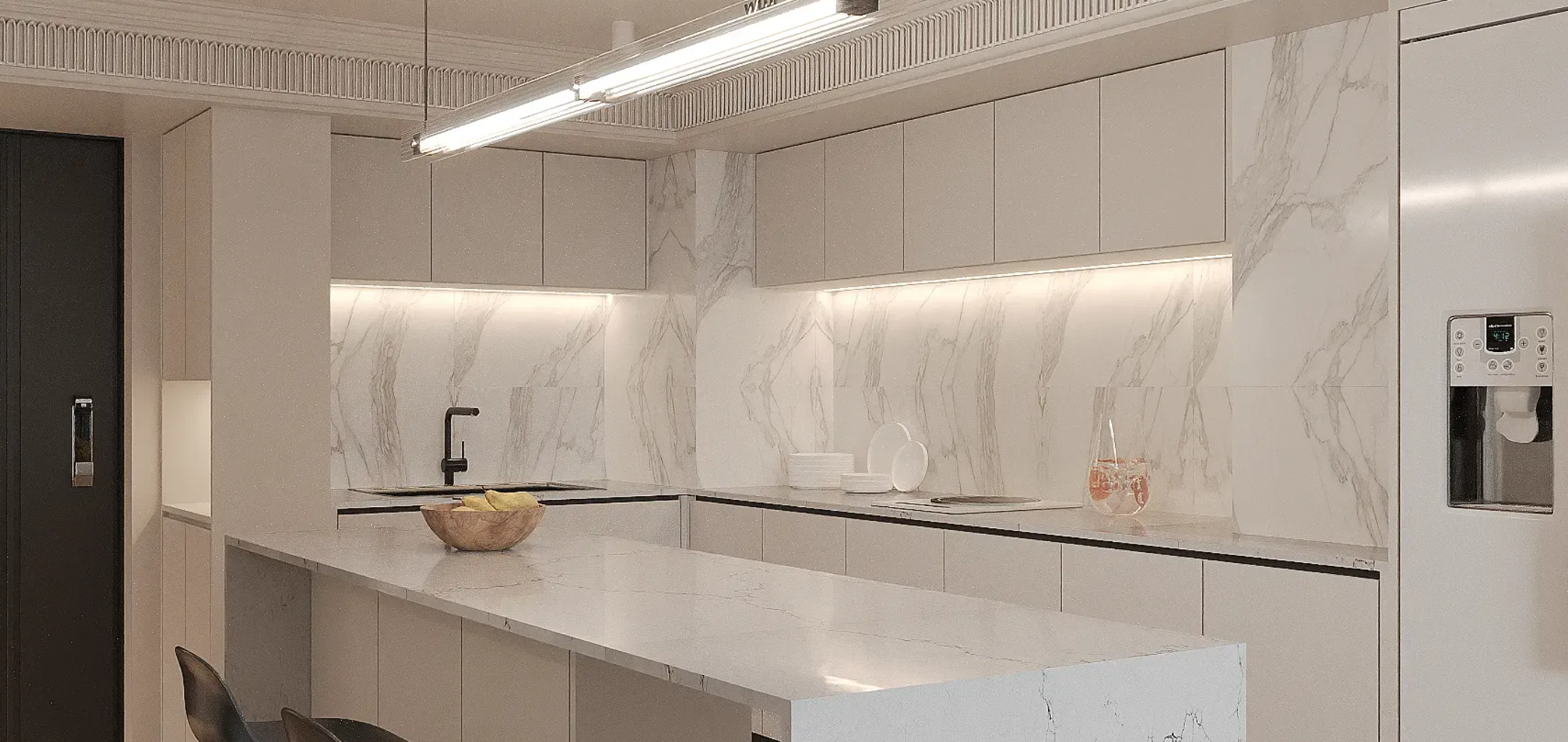 This polished, bookmatched surface is ideal for kitchens, bathrooms, wall panels, and high-end feature installations. Tectonic Tessellations brings a sense of strength, movement, and geological beauty to interiors that appreciate the intersection of natural inspiration and contemporary design.