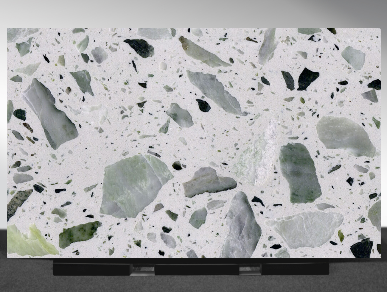 Designed for both residential and commercial applications, Verde Imperiale Terrazzo Mamo is ideal for kitchen benchtops, bathroom vanities, splashbacks, feature walls, flooring, and custom joinery. Its durable terrazzo composition ensures excellent performance in high-traffic areas while maintaining a refined, architectural finish.