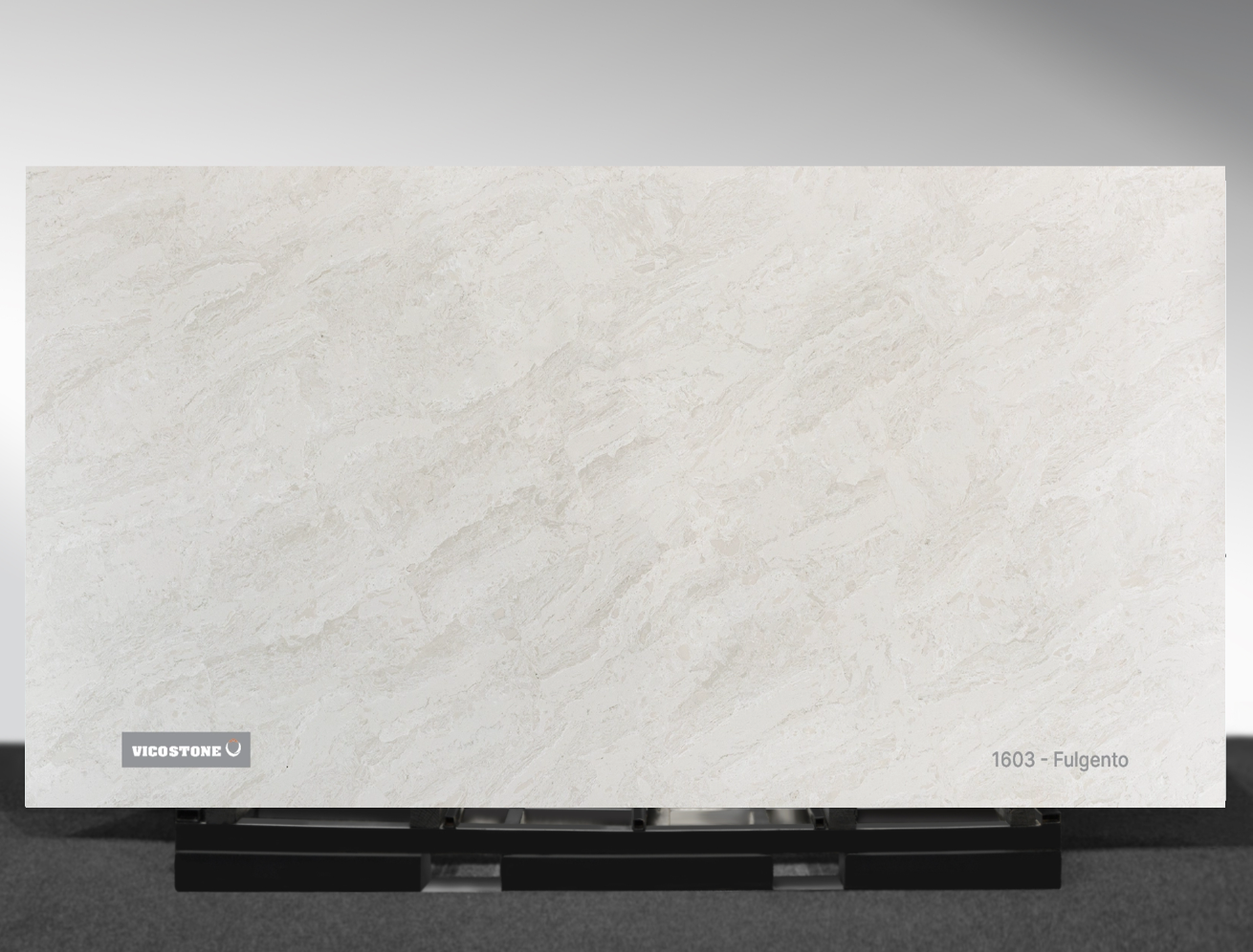 Manufactured by Vicostone using advanced quartz technology, Fulgento 1603 provides exceptional durability, non-porous performance, and low maintenance. Its sophisticated, lunar-inspired design makes it ideal for kitchen benchtops, bathroom vanities, and interior spaces seeking elegance and character.