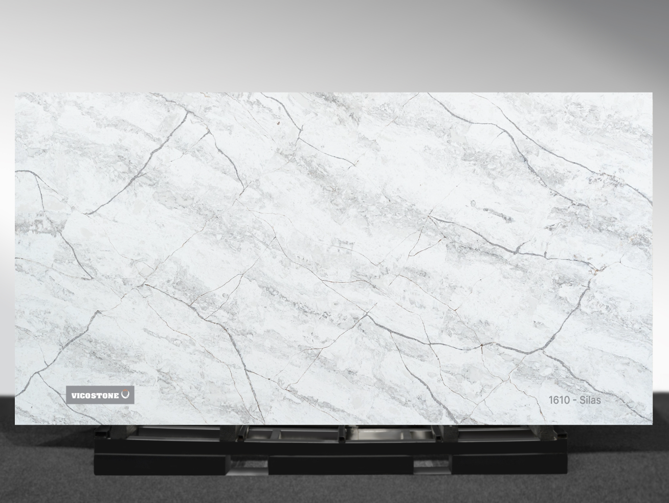 Vicostone Silas 1610 Quartz Slab | Dramatic White & Gray Quartz with Dynamic Veins | AUSK Stone Supply