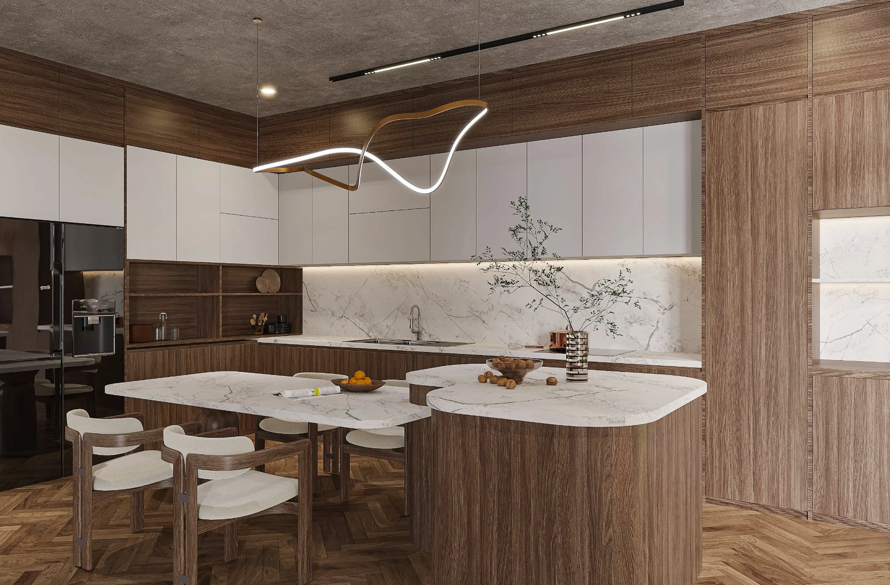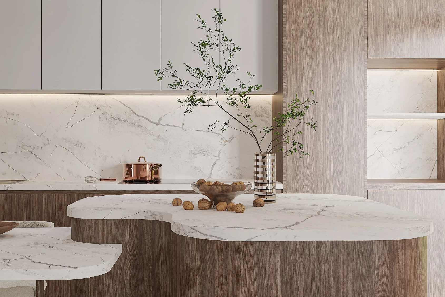Vicostone Silas 1610 quartz kitchen benchtop bold veined surface modern interior
